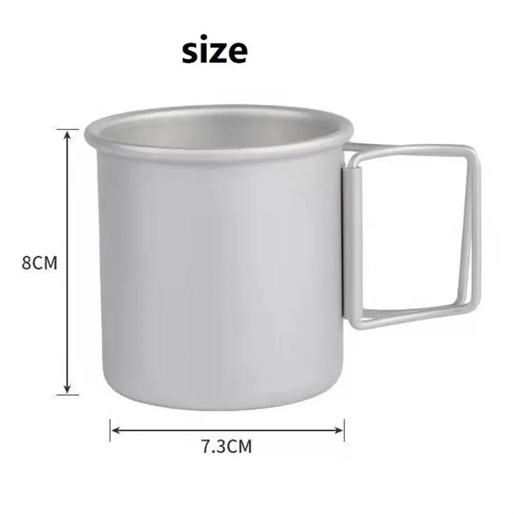 Description: Name: Camping Cup Size: Diameter 7.1x Height 7.8cm Material: 5052 aluminum alloy Weight: 60G Carton size: 8.8×8.6×8.6CM Capacity: 300ml